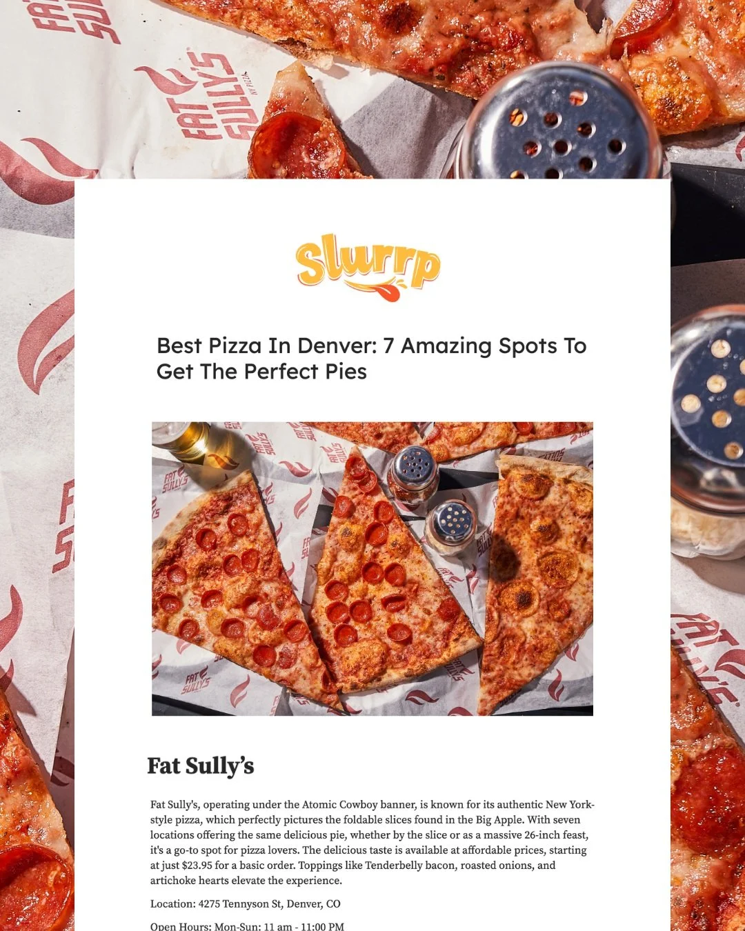 SLURRP: BEST PIZZA IN DENVER: 7 AMAZING SPOTS TO GET THE PERFECT PIES, FAT SULLY’S NY PIZZA