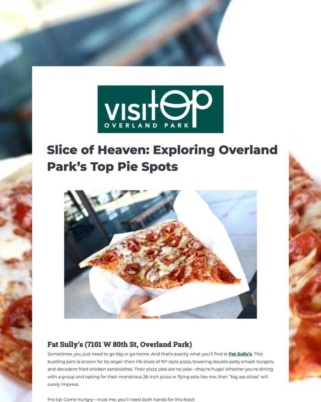 VISIT OVERLAND PARK: EXPLORING OVERLAND PARK’S TOP PIE SPOTS, FAT SULLY’S NY PIZZA